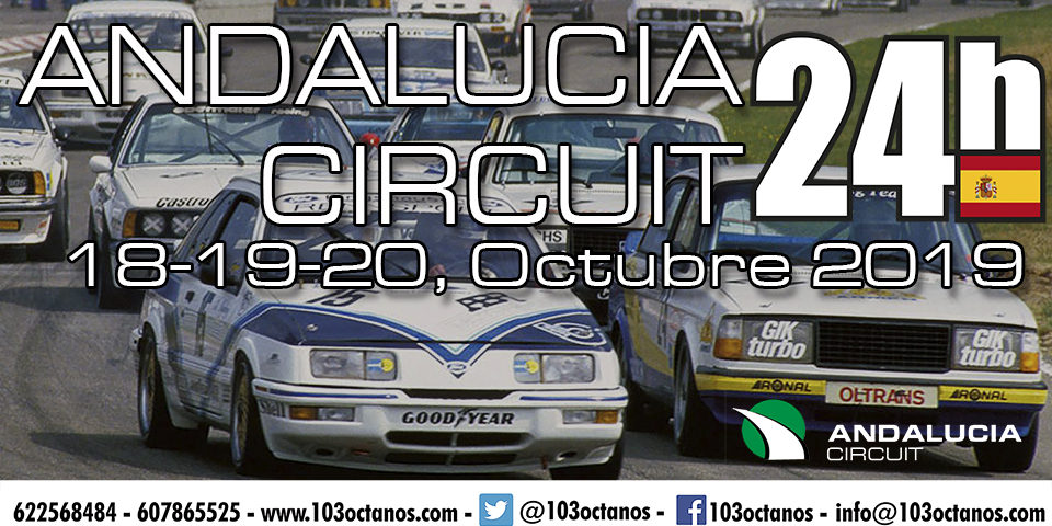 Hola a tod@s, 103 Octanos organiza las 24H de Andalucía Circuit del 18-19-20 de Octubre 2019