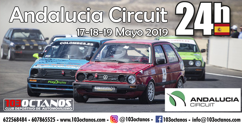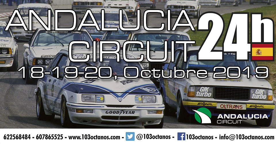 Hola a tod@s, 103 Octanos organiza las 24H del Andalucia Circuit del 17 al 19 de Mayo 2019 Ubicación: Almeria Longitud: 5.020 metros Recta principal: 460 […]