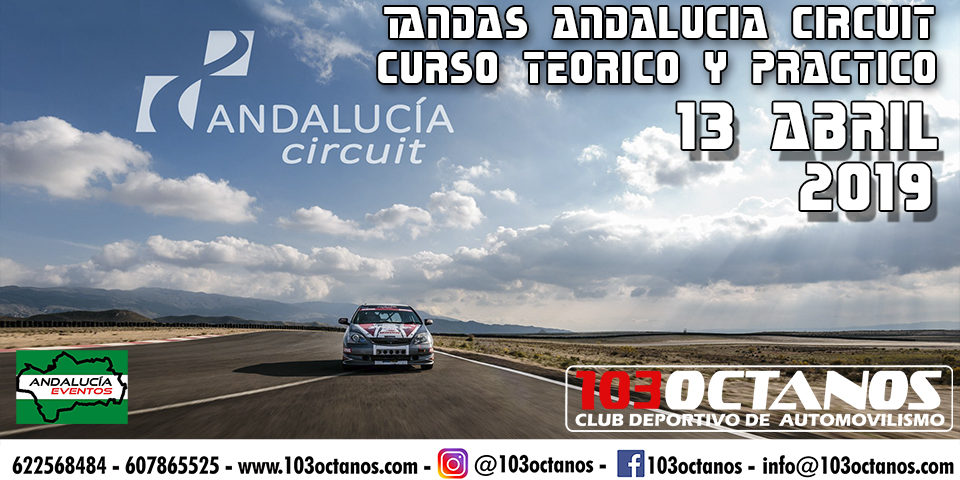 10/01/2019Hola a tod@s, 103 Octanos organiza Tandas y cursos de conducción en Andalucía Circuit el 13 Abril 2019